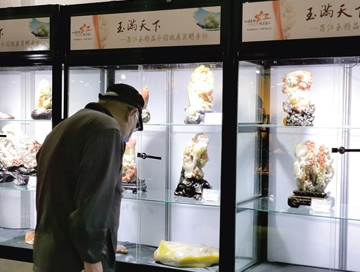 17日上午,记者在展会现场走访发现,展馆内款式多样、色彩斑斓的珠宝、翡翠、宝石、奇石、玉石、珍珠、黄龙玉、和田玉、琥珀、水晶等好物应有尽有,让人目不暇接。